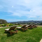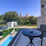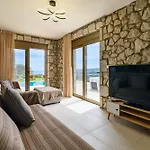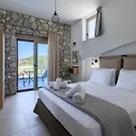 Une terrasse offre ici une vue sur les montagnes. Drakos Estate - Luxury Pool Villas présente une salle de bains avec une toilette séparée, un bain à remous et une douche. Vous pourrez également profiter du confort d'un sèche-cheveux et des draps de bain.